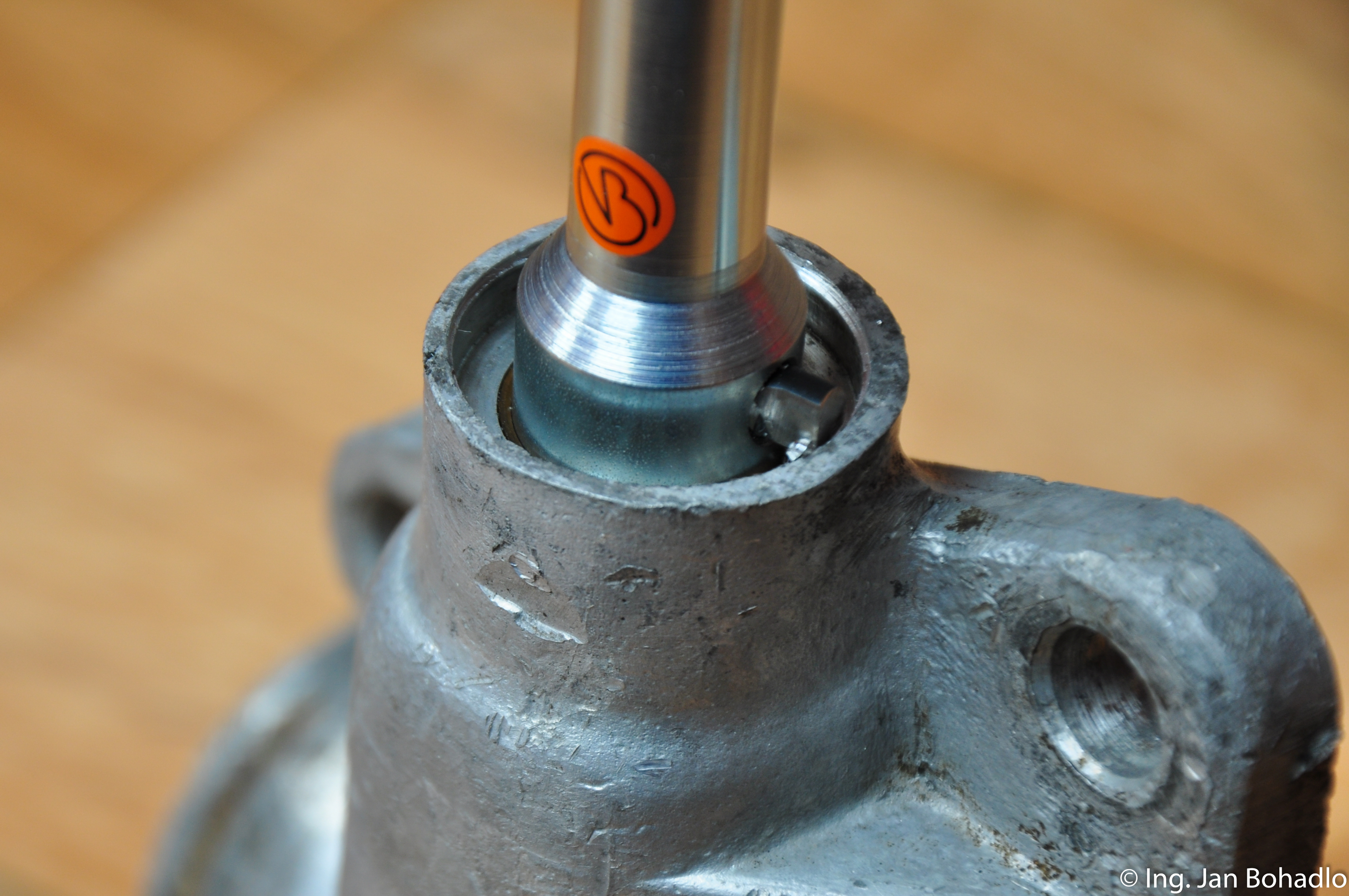 Přípravek (vykružovák) na zvětšení průměru, na vstupu do převodky řízení, pro použití gufera namísto o-kroužku.