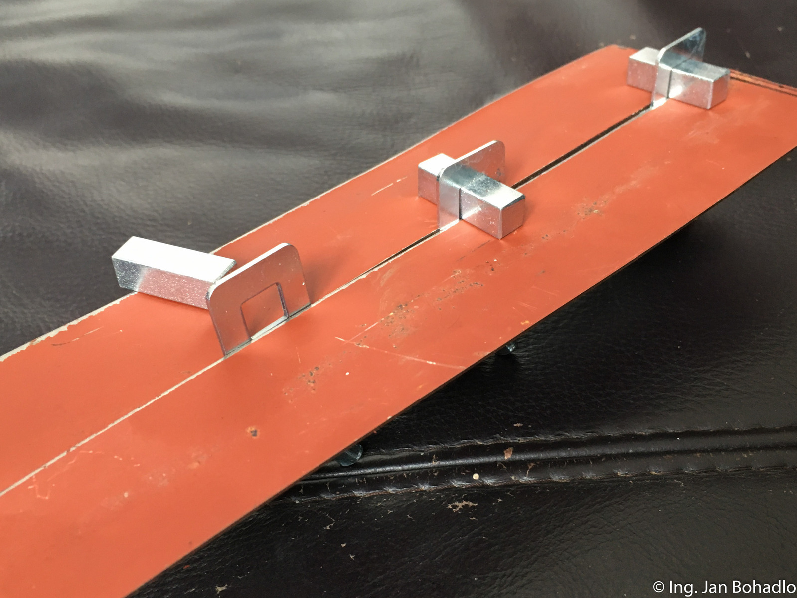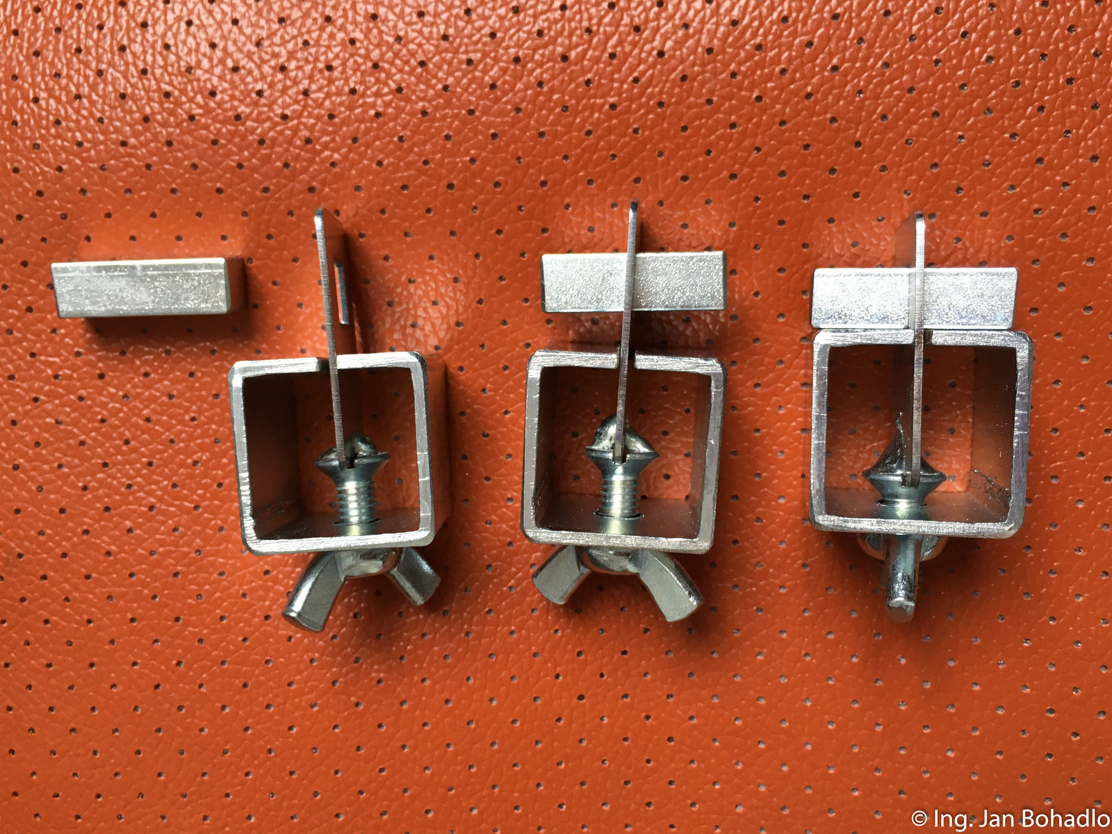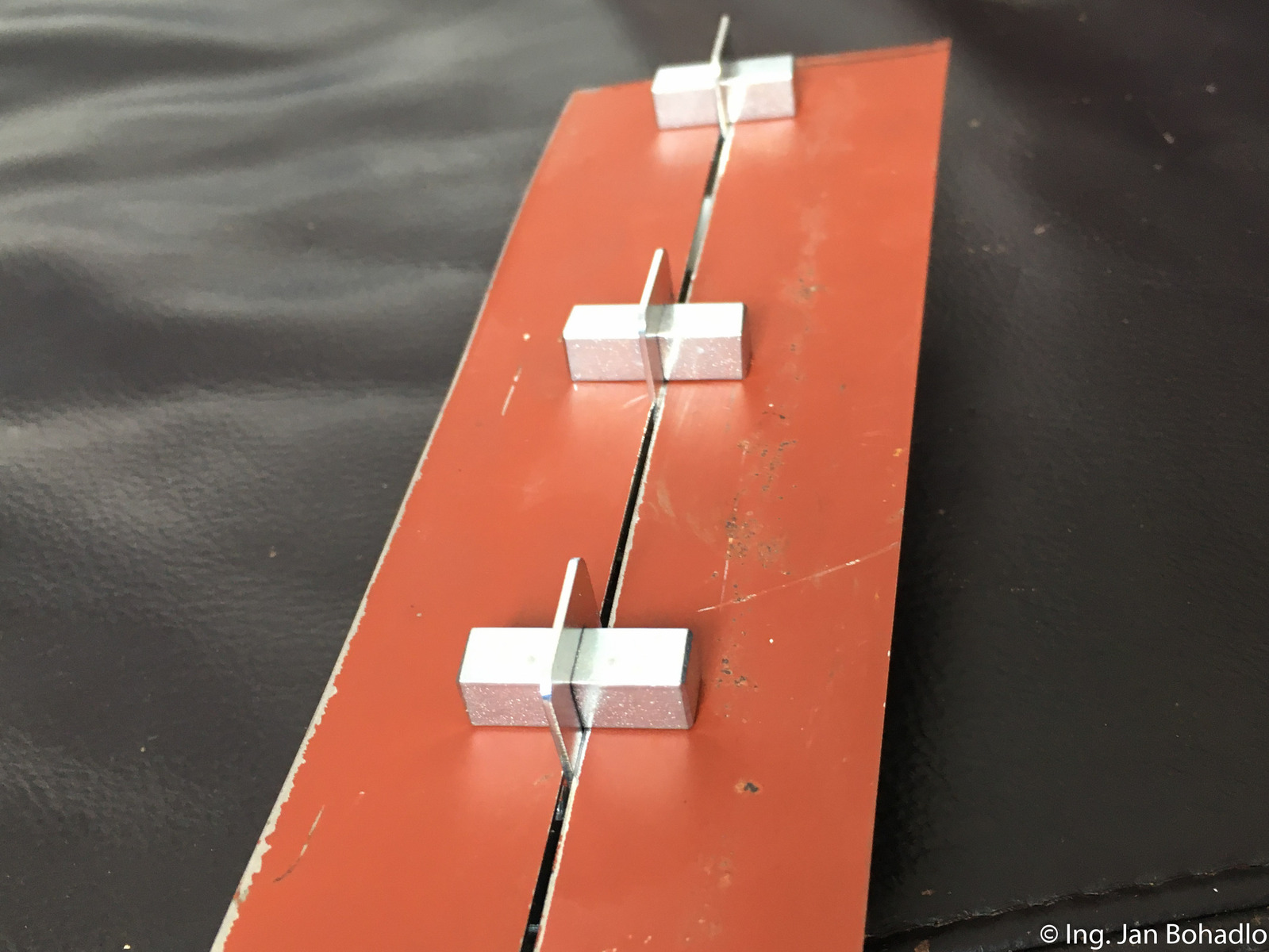 Slouží k ustavení plechů do stejné roviny a se stejnou mezerou při svařování na tupo k sobě.