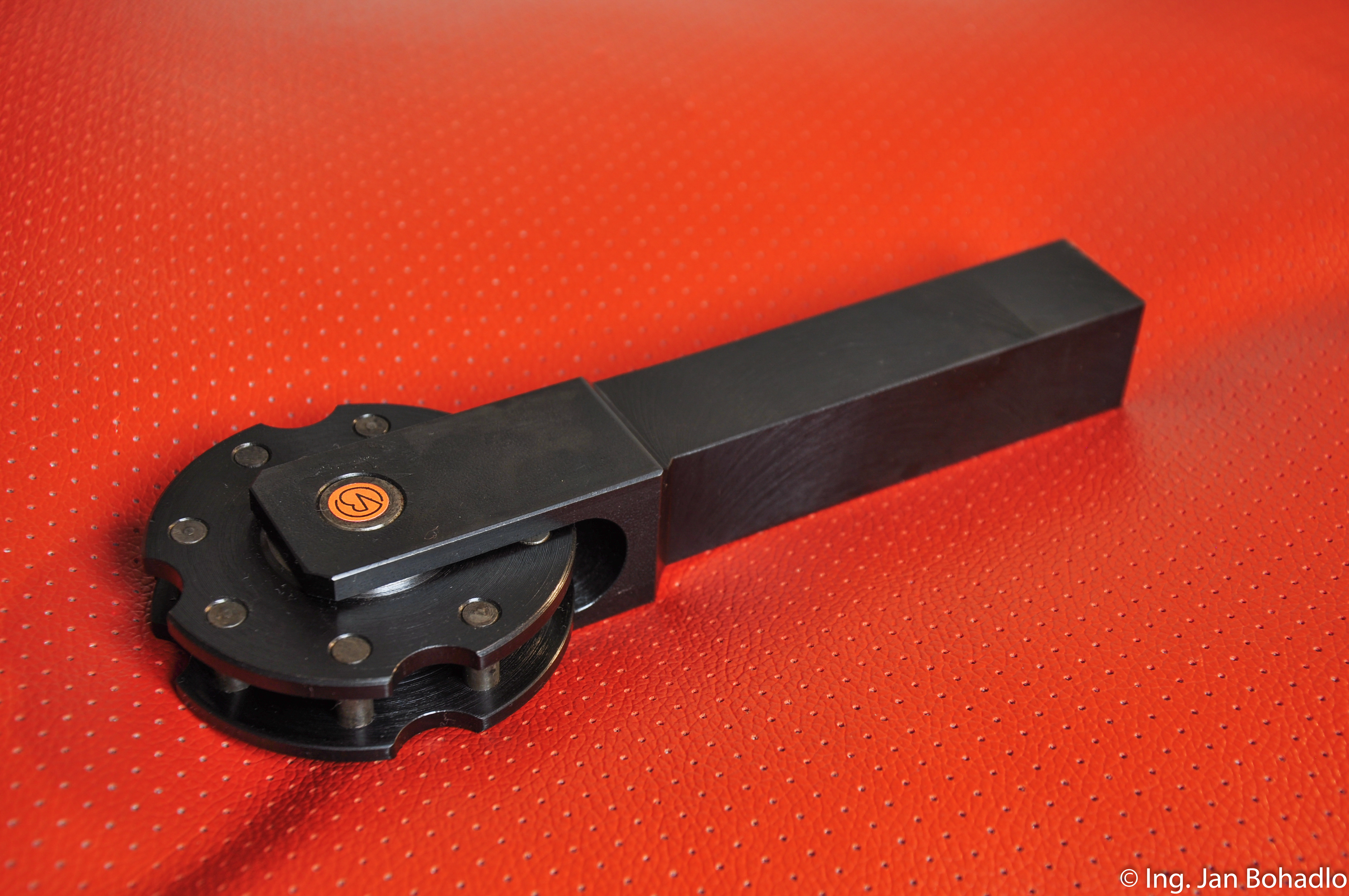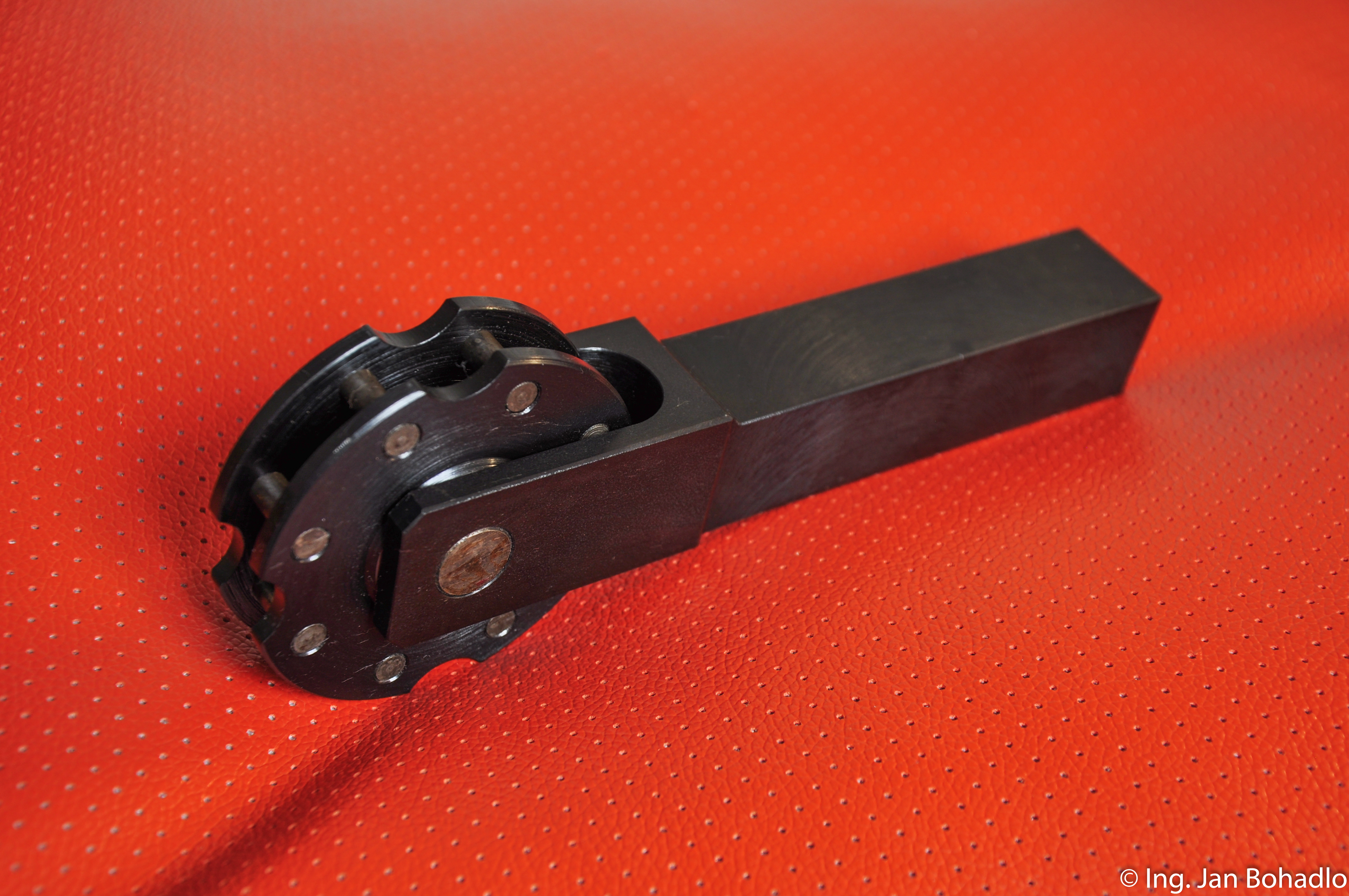Otočný držák je určen k plnutí 4 párů vroubkovacích (rádlovacích) koleček o rozměru 20 x 10 x 6 mm.