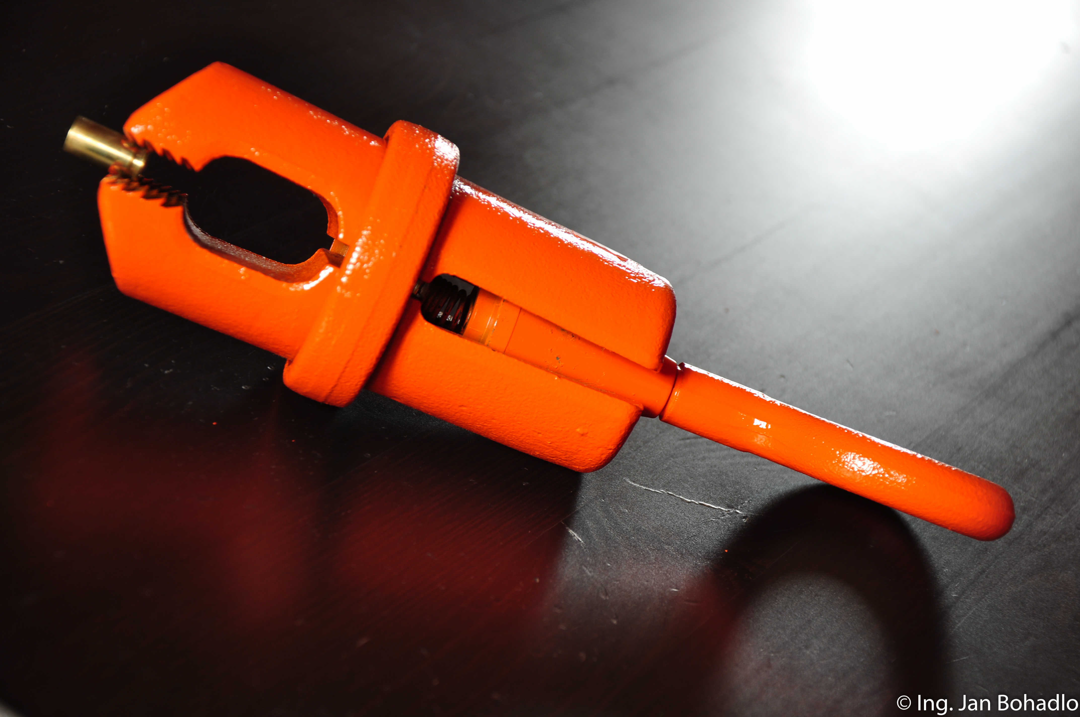 Tahací karosářská svěrka. Provedení přímé, určeno k jednosměrnému tahu. Svěrka je samosvorná.