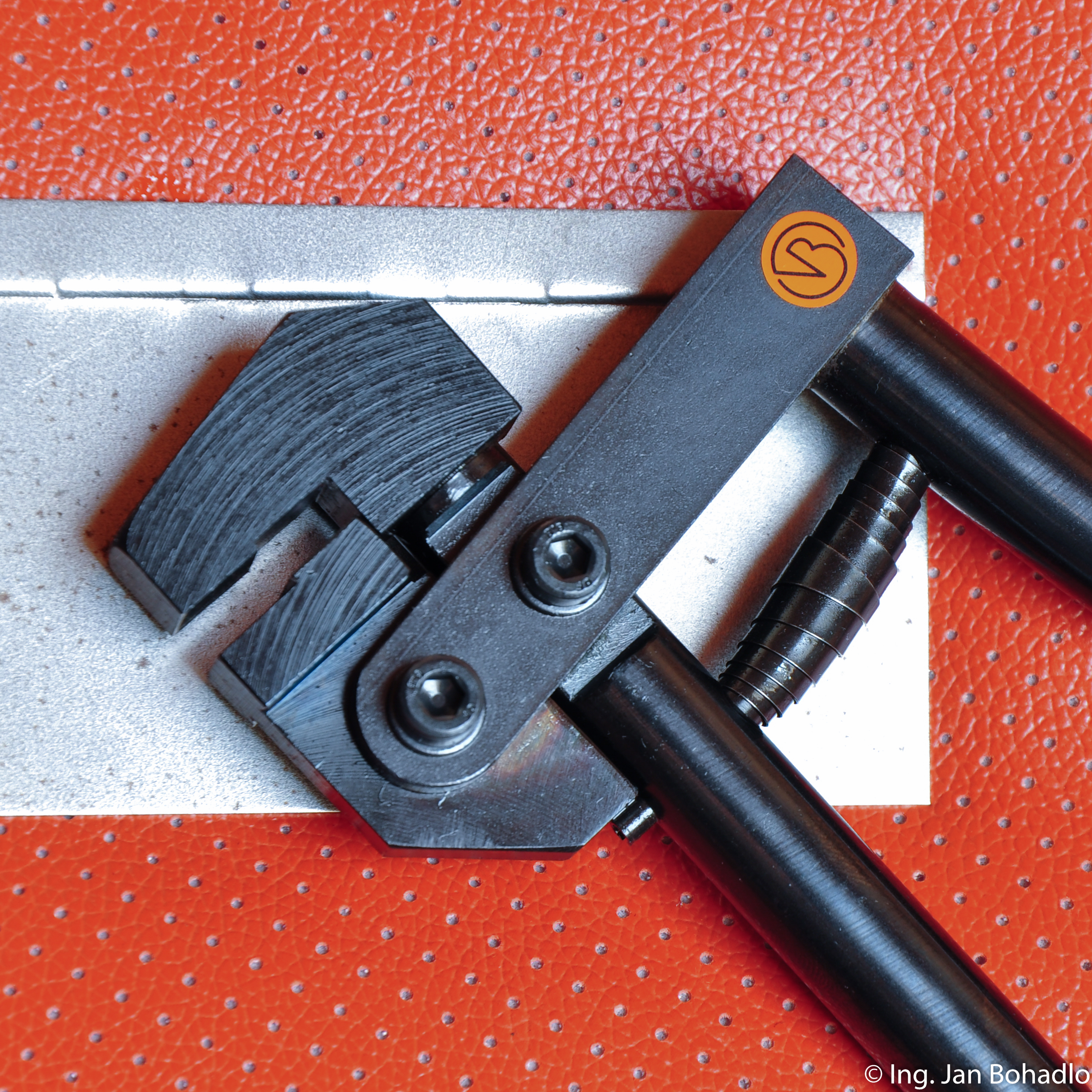 Slouží k ustavení plechů do stejné roviny a se stejnou mezerou při svařování na tupo k sobě.