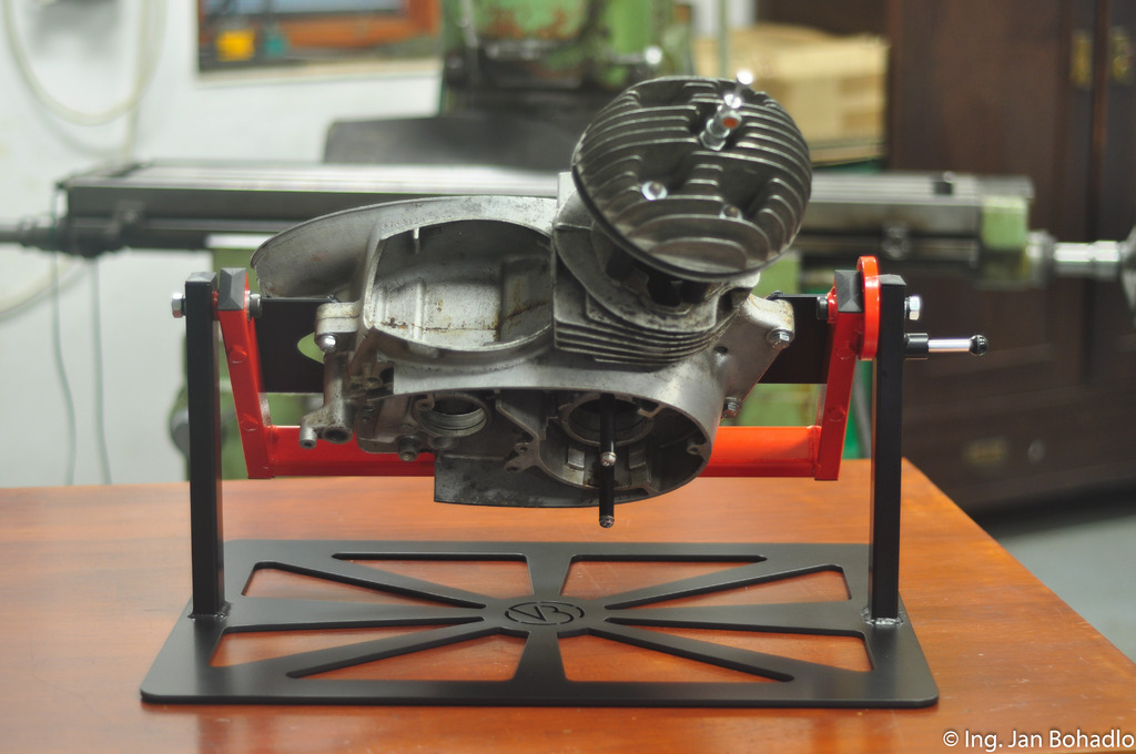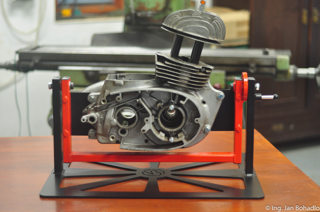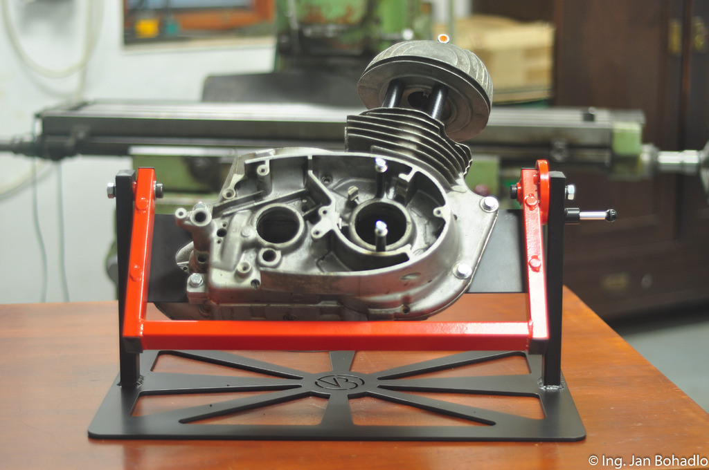 Jedná se o poslední verzi manipulátoru s výměnnými úchyty motoru. Postupně budou vznikat samostatné úchyty pro různé další typy motorů Jawa, Jawa-ČZ a ČZ, aby byl náš výrobek plně využitelný.