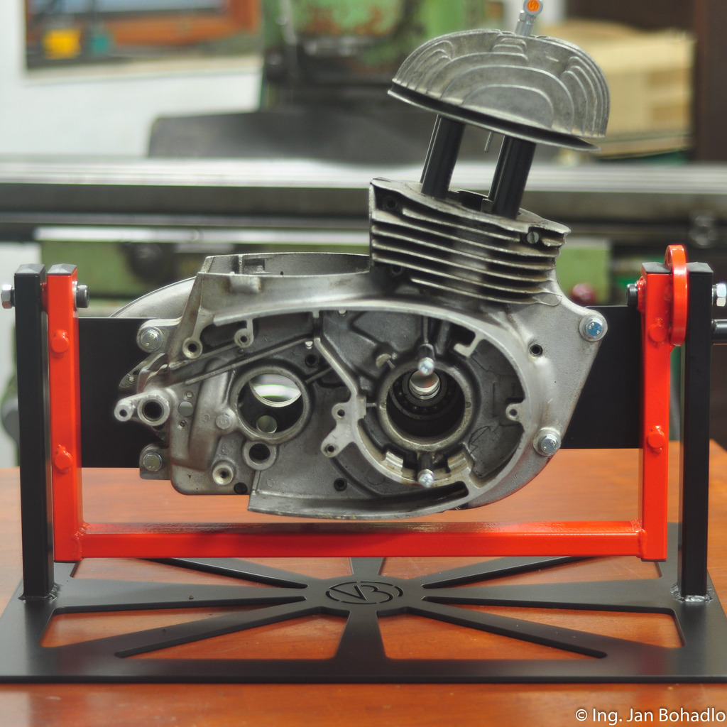 Jedná se o poslední verzi manipulátoru s výměnnými úchyty motoru. Postupně budou vznikat samostatné úchyty pro různé další typy motorů Jawa, Jawa-ČZ a ČZ, aby byl náš výrobek plně využitelný.