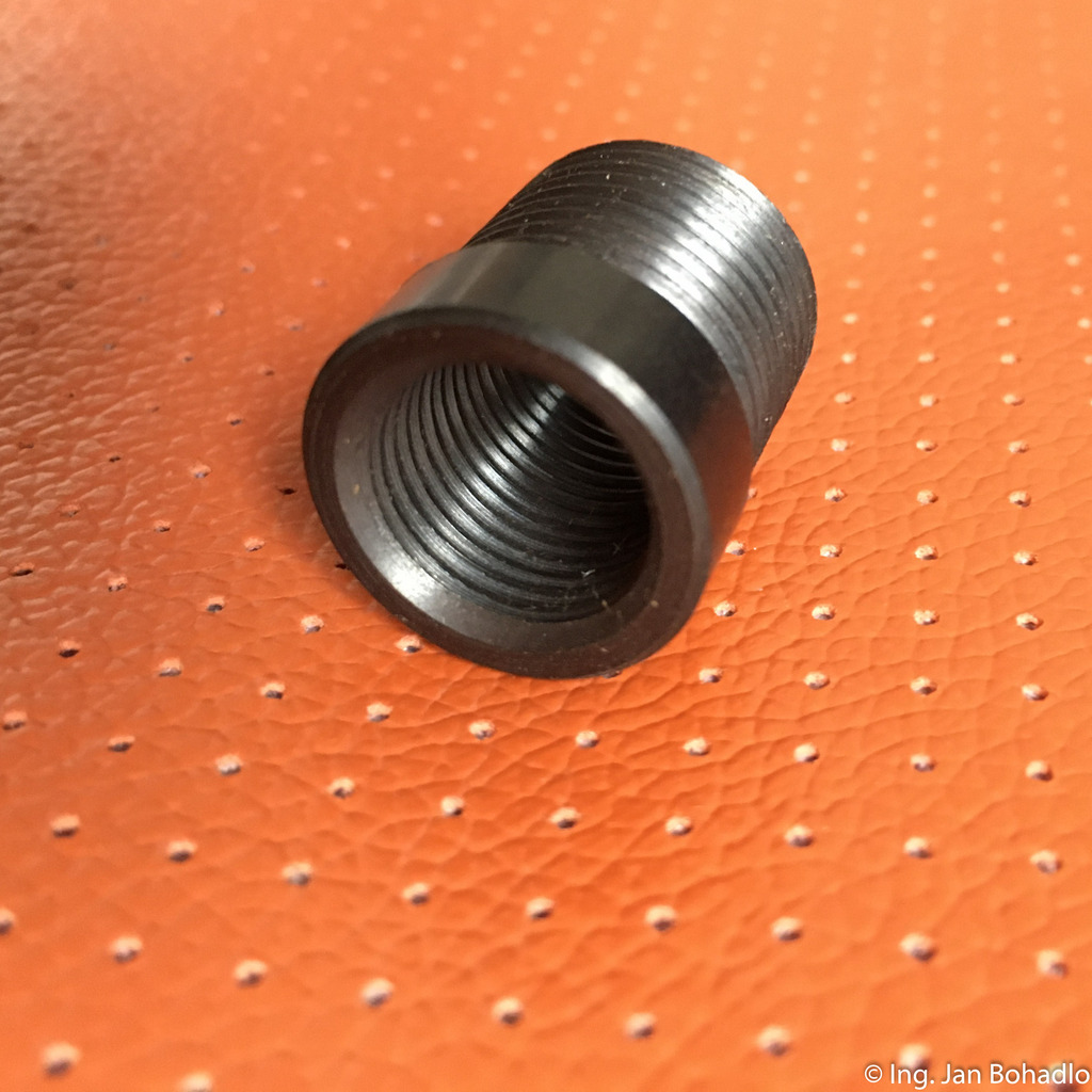 Závitová redukce je určena pro Měrku na seřízení předstihu BMP, aby ji bylo možné namontovat i do starších typů hlav se závitem pro zapalovací svíčku s "velkým" závitem M18x1,5.