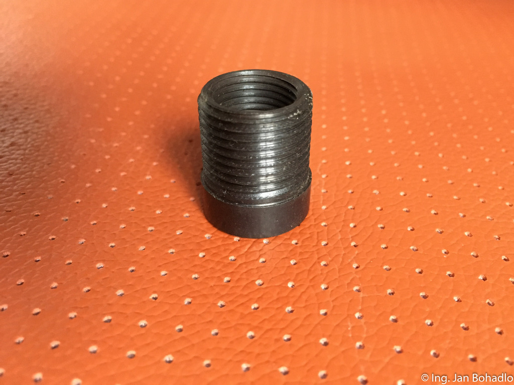 Závitová redukce je určena pro Měrku na seřízení předstihu BMP, aby ji bylo možné namontovat i do starších typů hlav se závitem pro zapalovací svíčku s "velkým" závitem M18x1,5.
