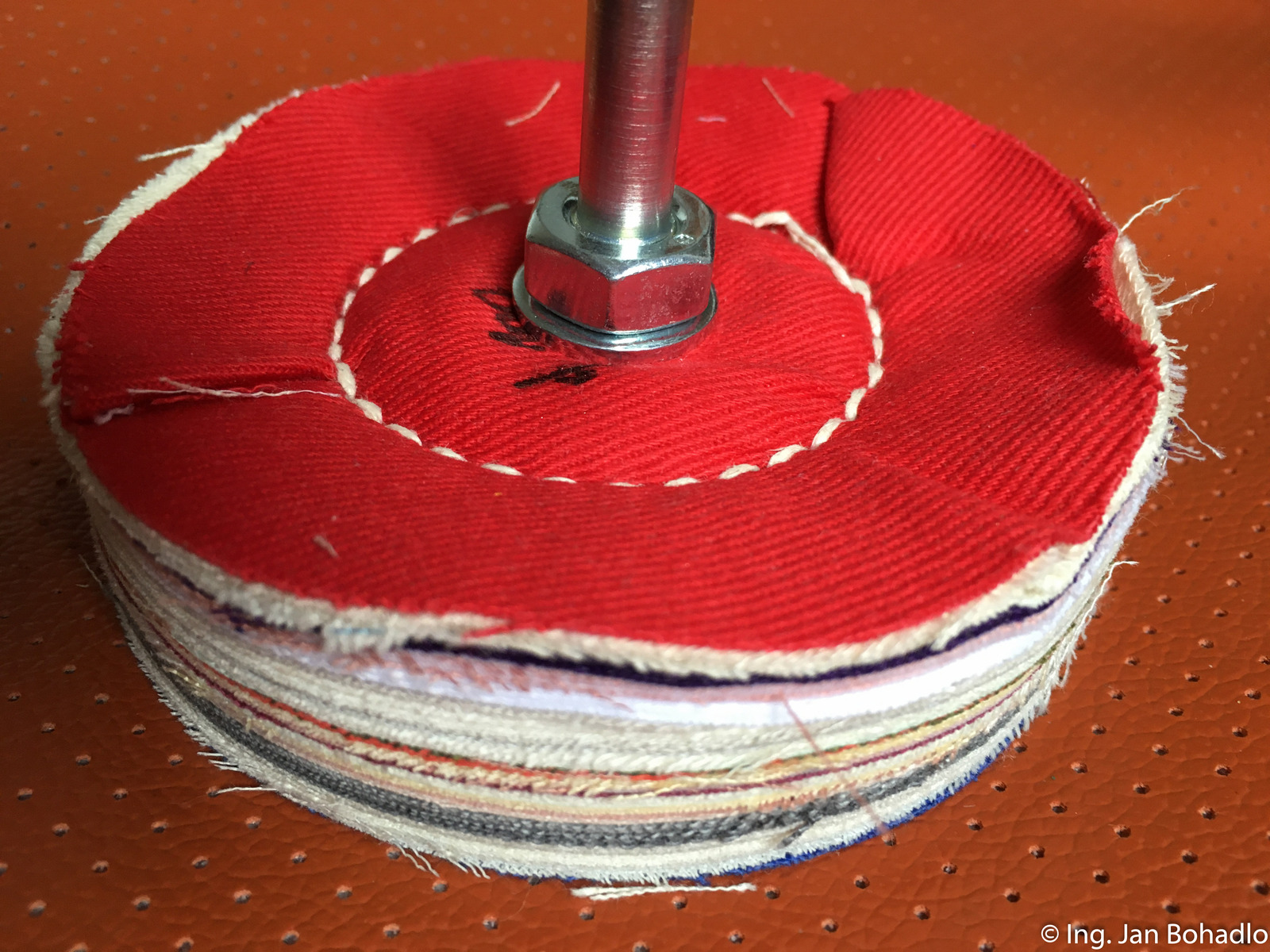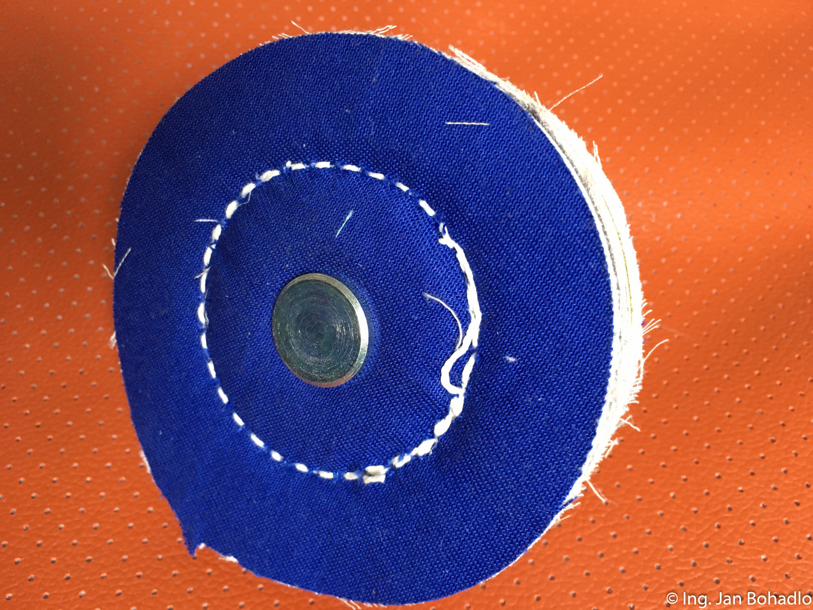 Upínací trn společně s bavlněným (kaliko) leštícím kotoučem.