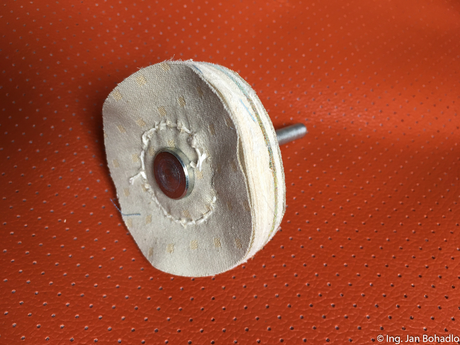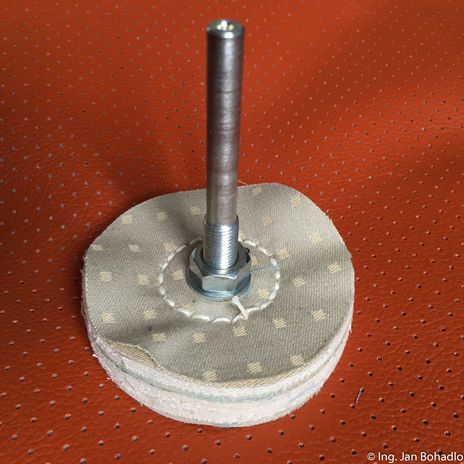 Upínací trn společně s bavlněným (kaliko) leštícím kotoučem.